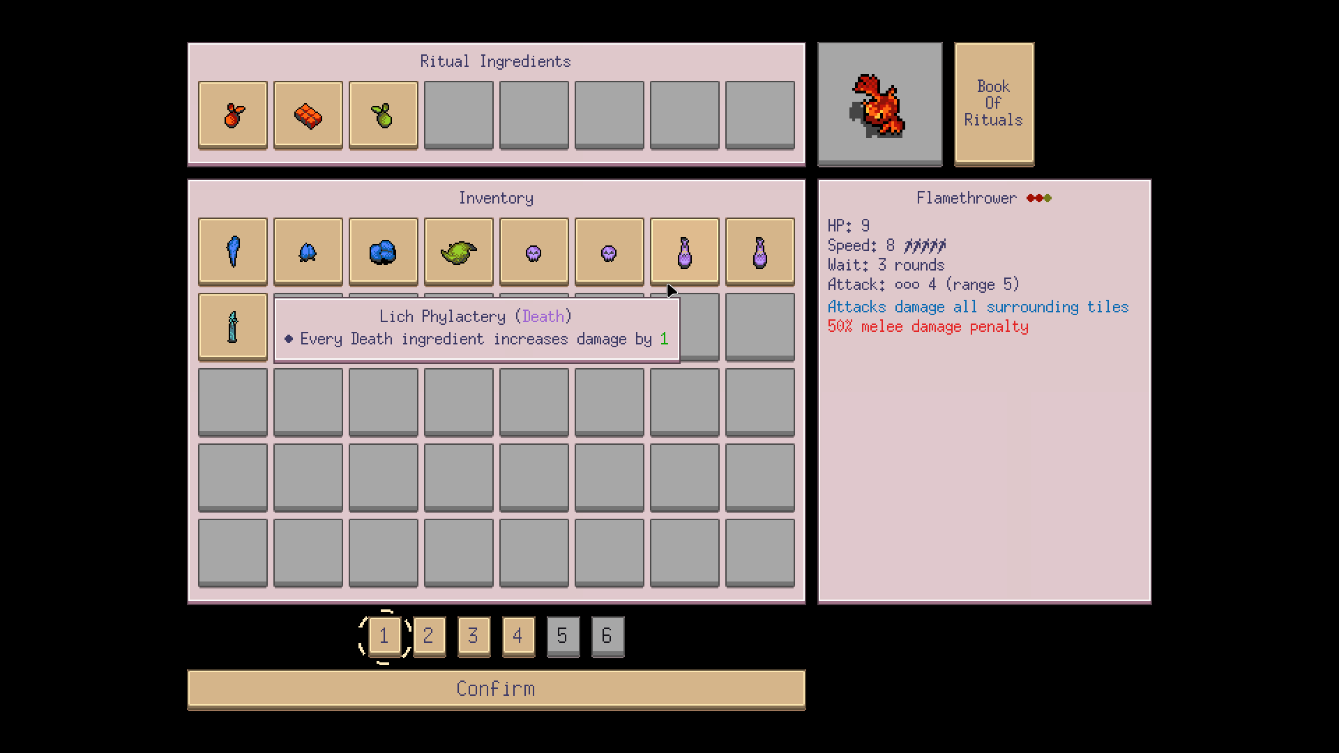 Shape the magical ingredients you have into minions and use them in turn-based combat. Consider it to be a proof of concept for a game I might end up making one day!